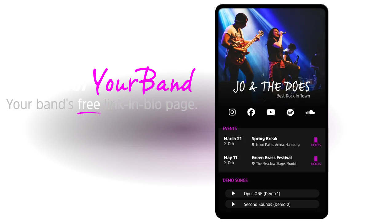 In fall/winter 2025, there will be a micro-site for your band that is fully integrated into BANDZONE. Accessible via a short link at band.bio/yourband