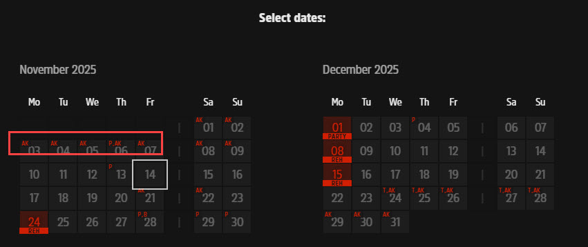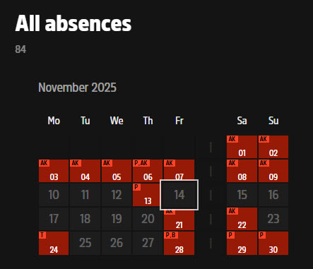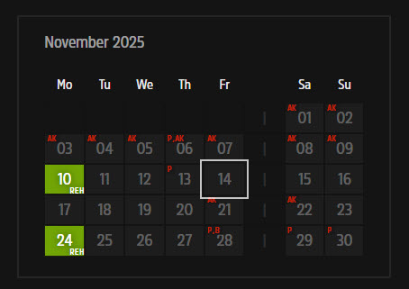 In all date selections, as a text abbreviation that can be set for each band member (by default, it is the first letter of their nickname):